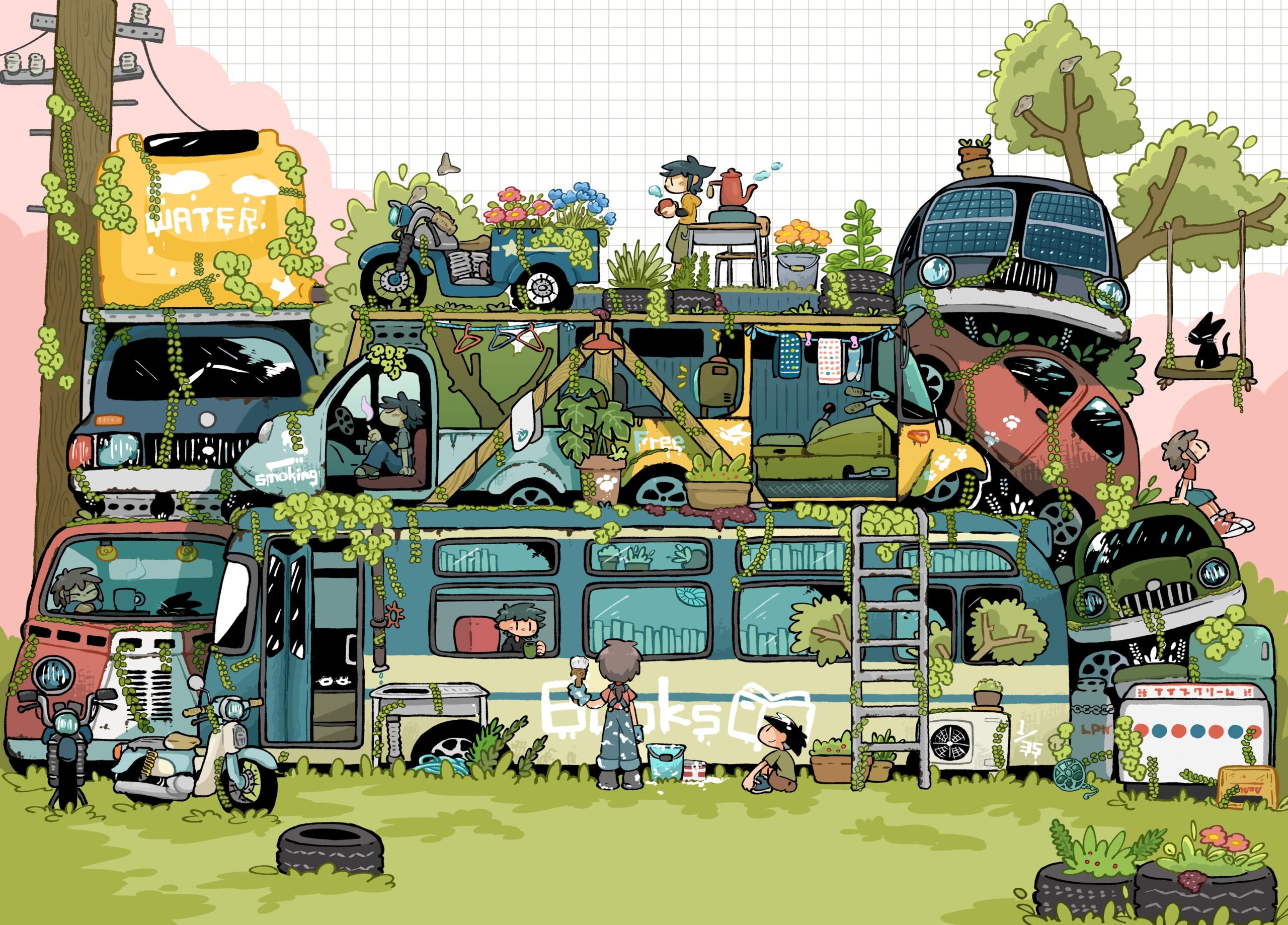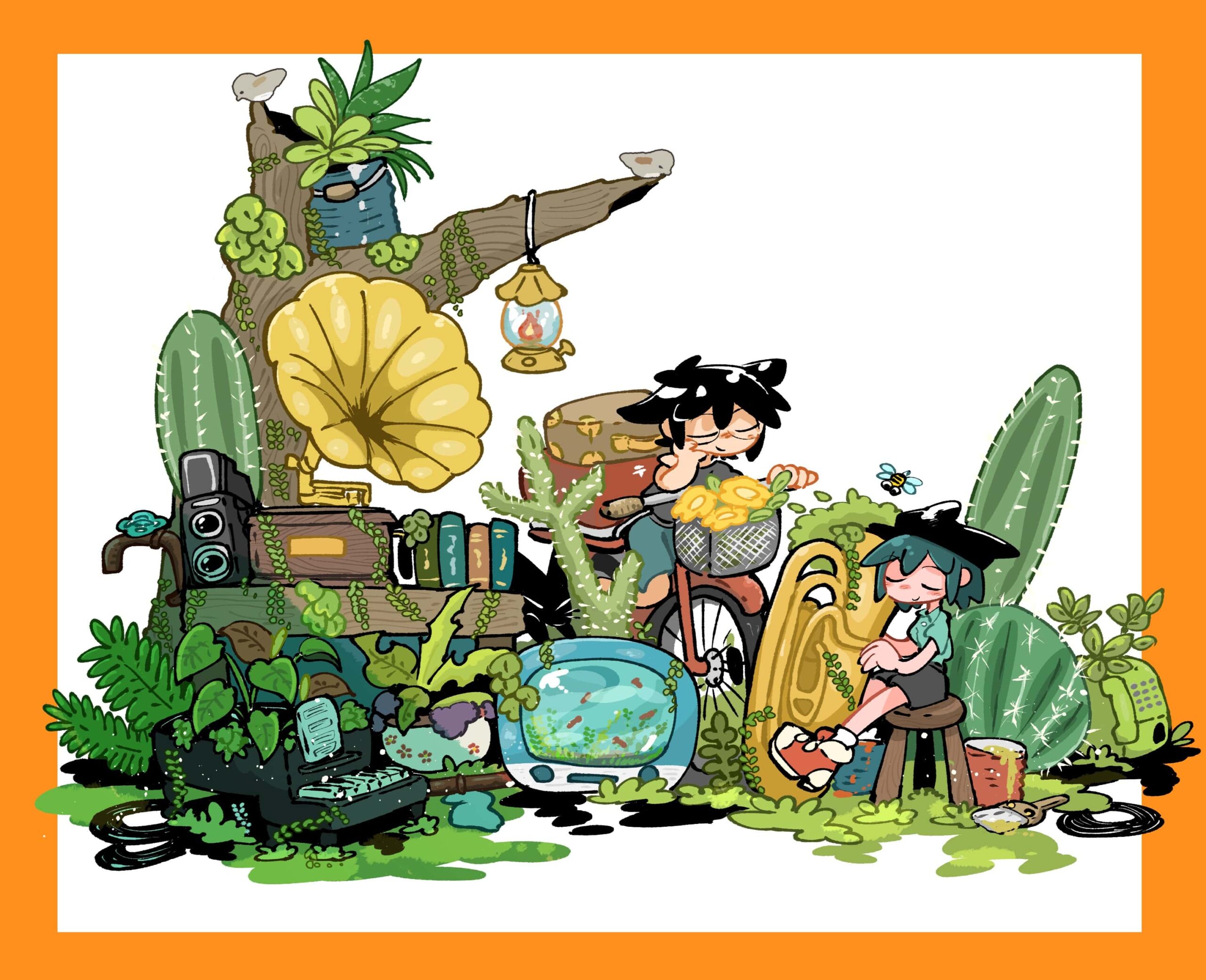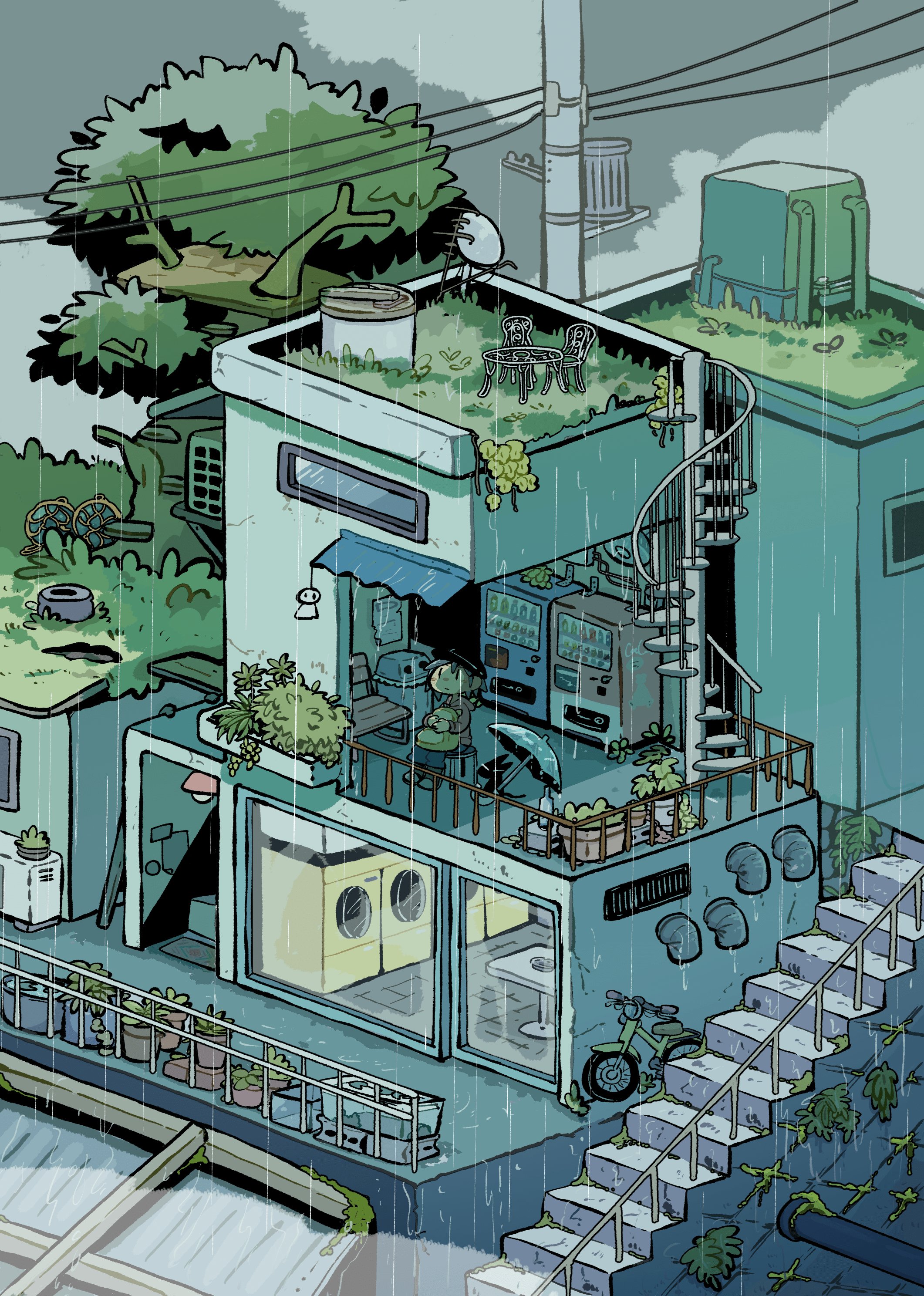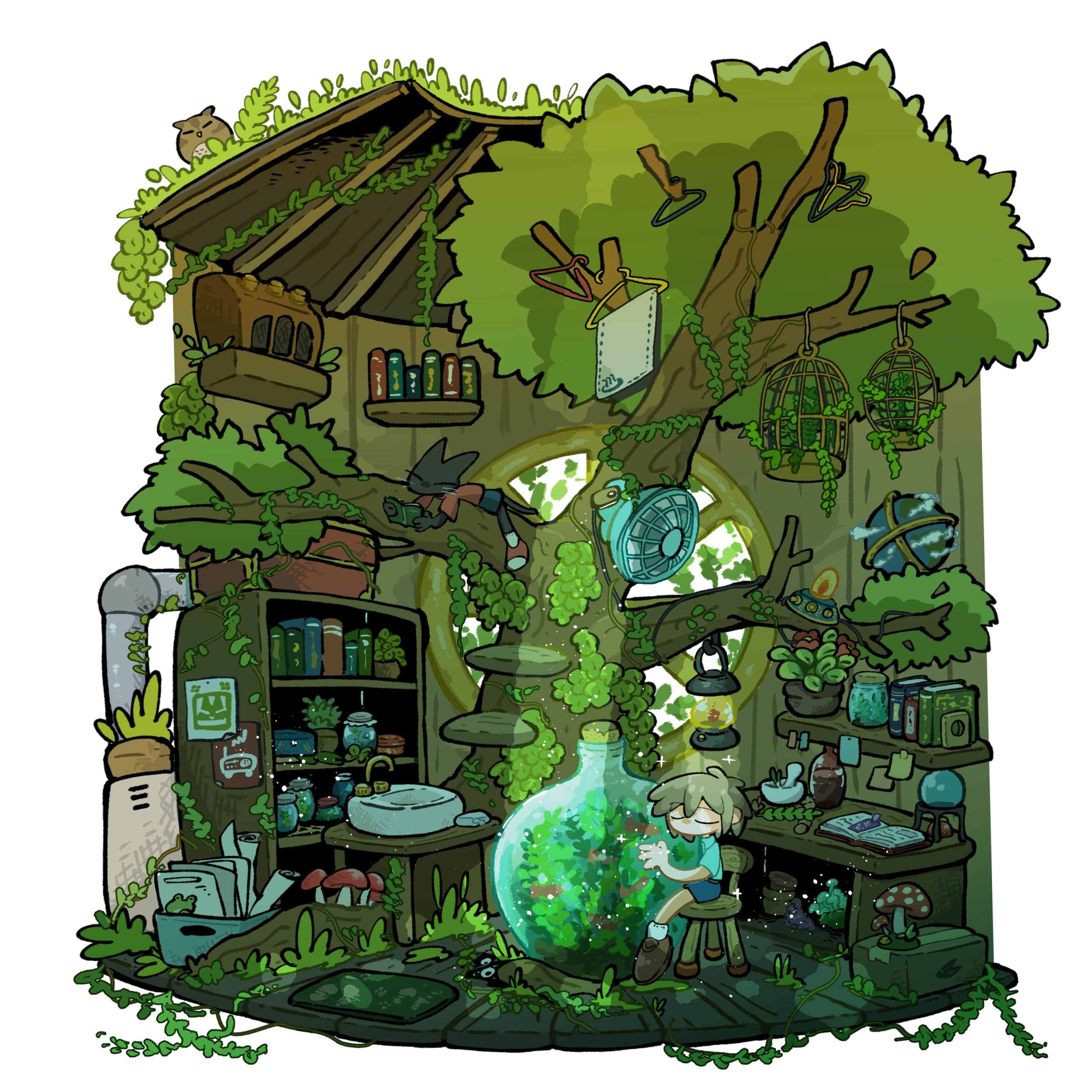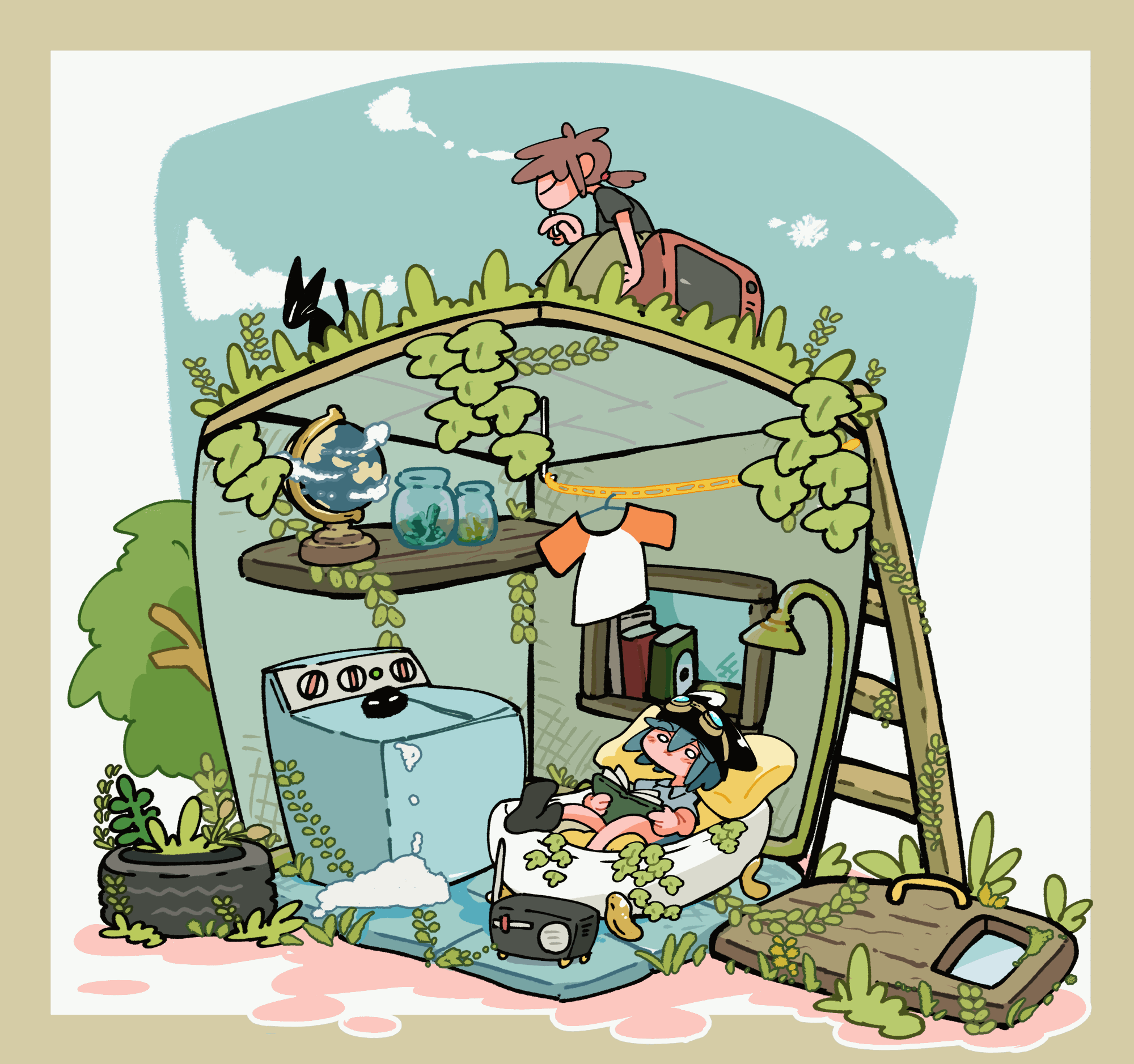 秘密基地の様な空間を描いています。