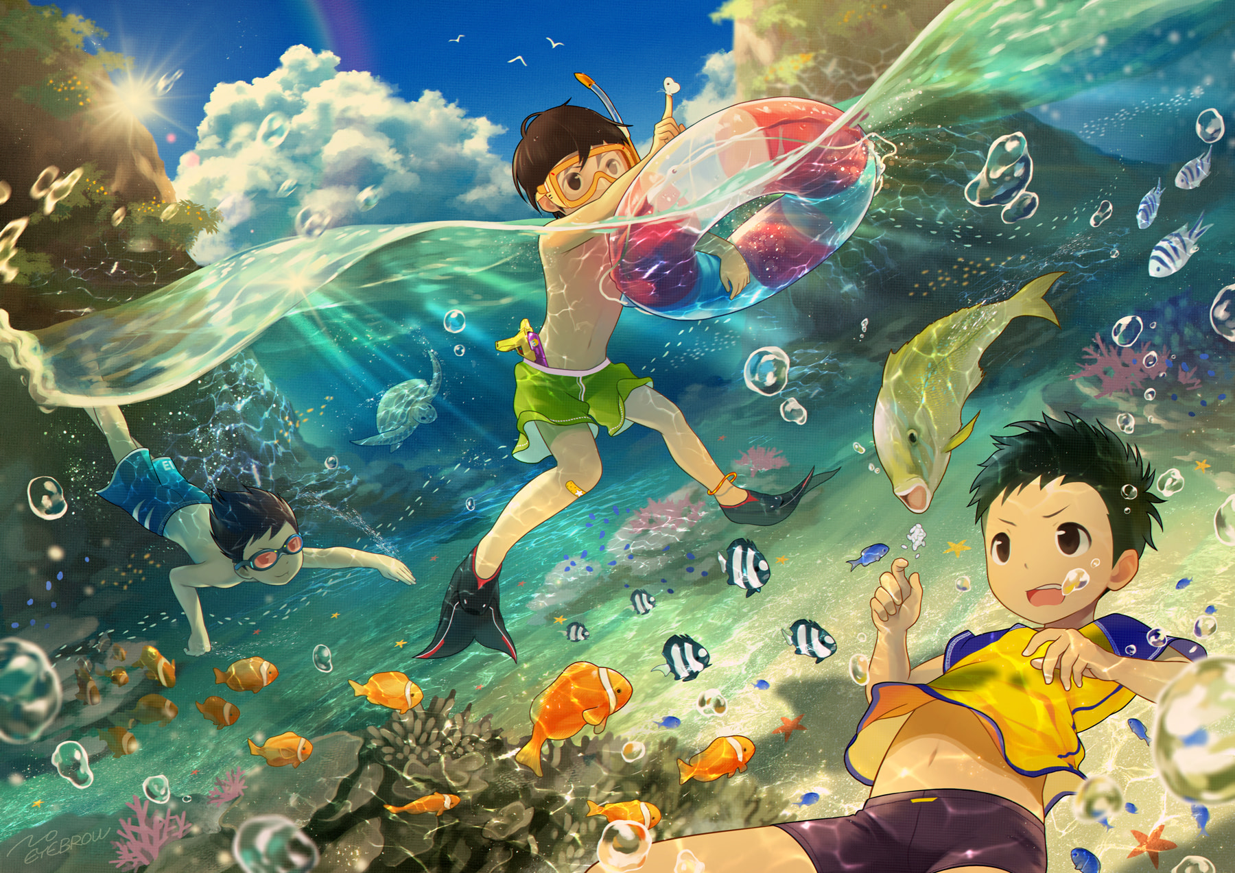 少年を中心とした世界を描きます。 深く残る子供時代の記憶を感じさせられるようなノスタルジックな情景が好きです。