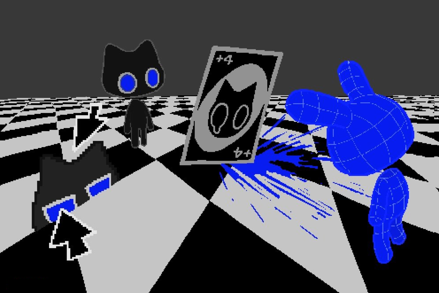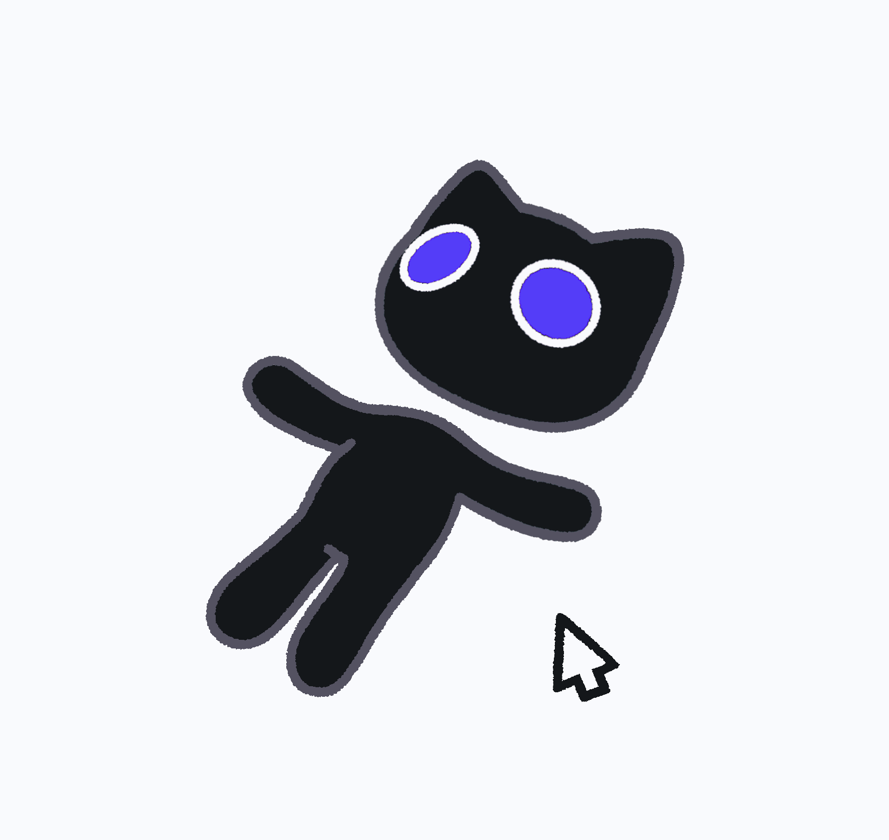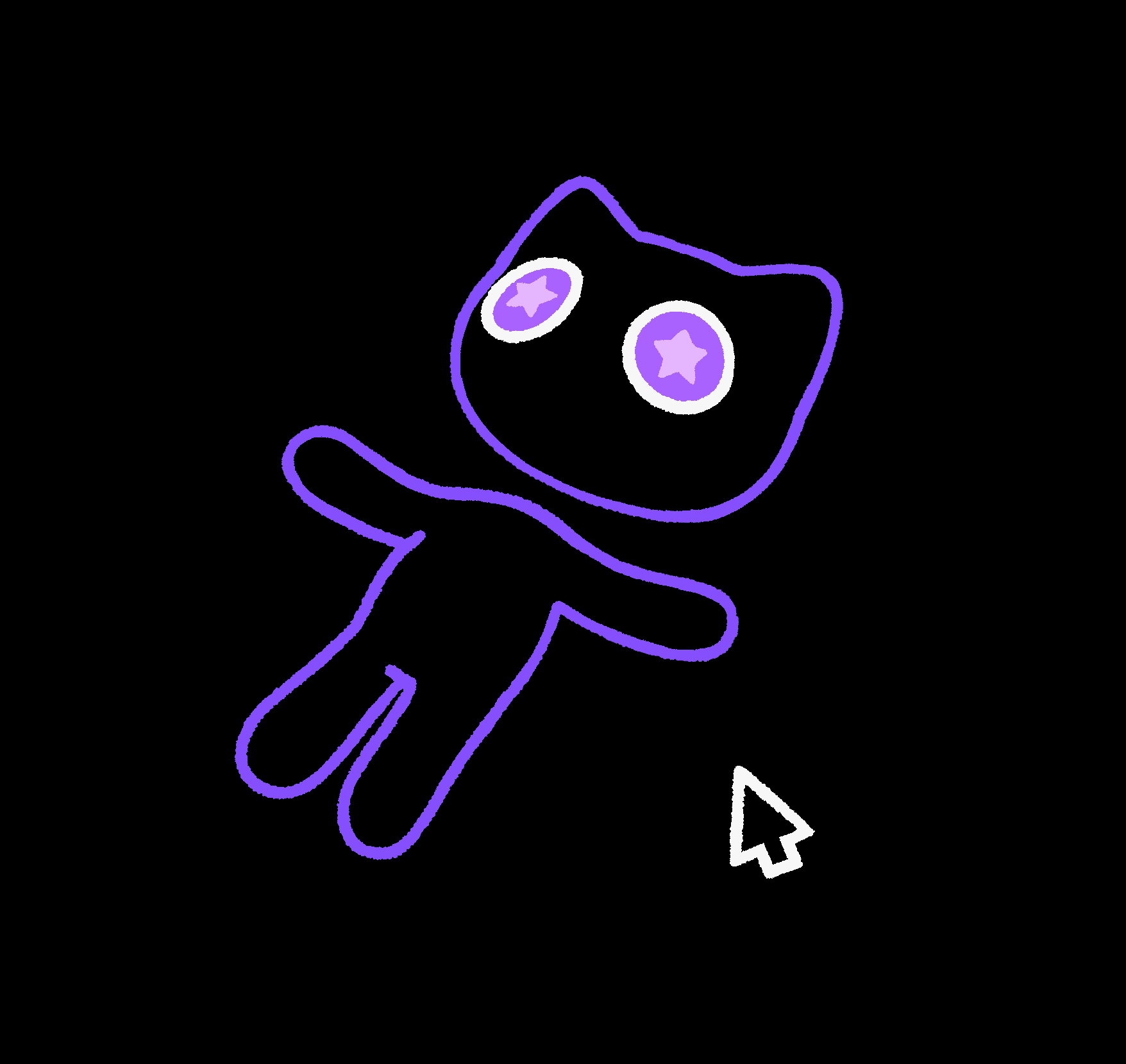 ネオンな色使いとダークでミニマルなキャラクターデザインが特徴。非現実的な空間と黒猫が好き。
