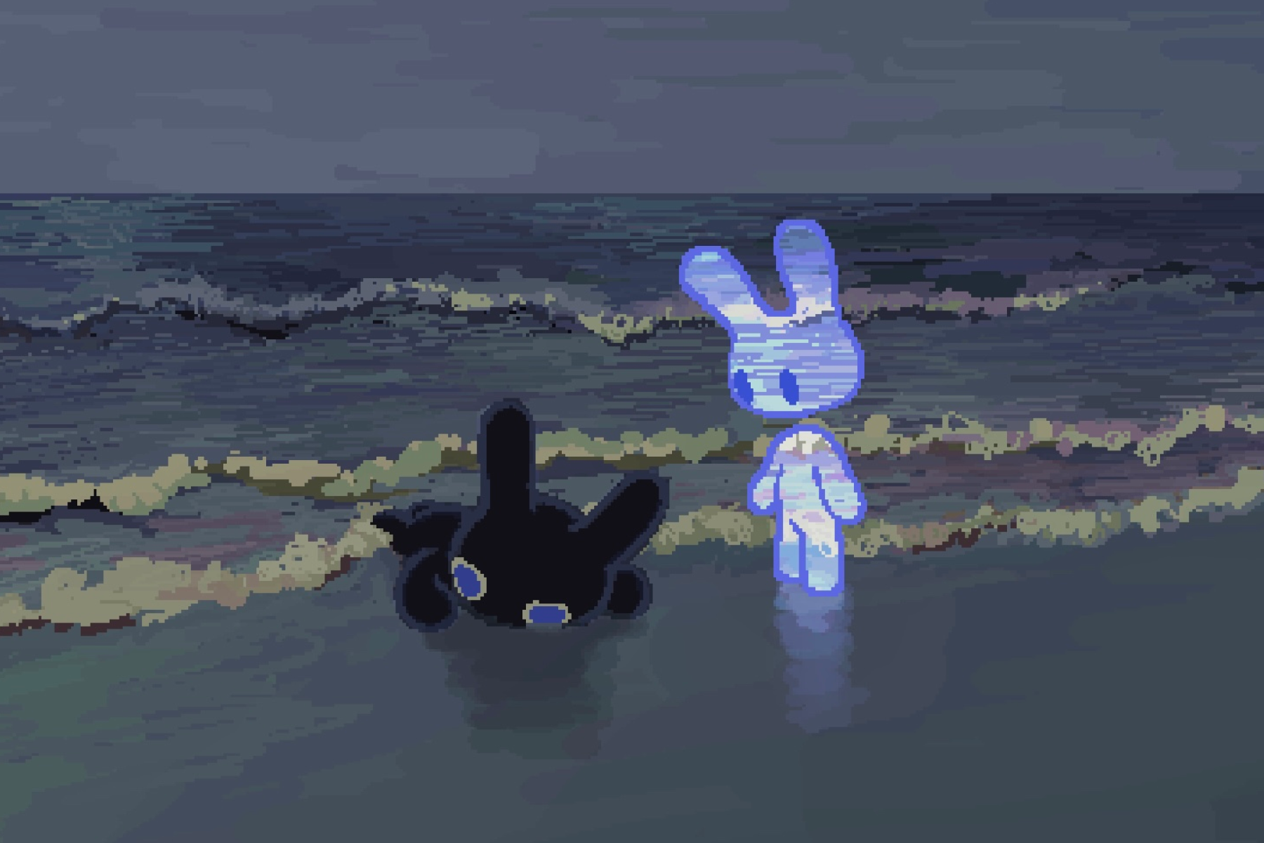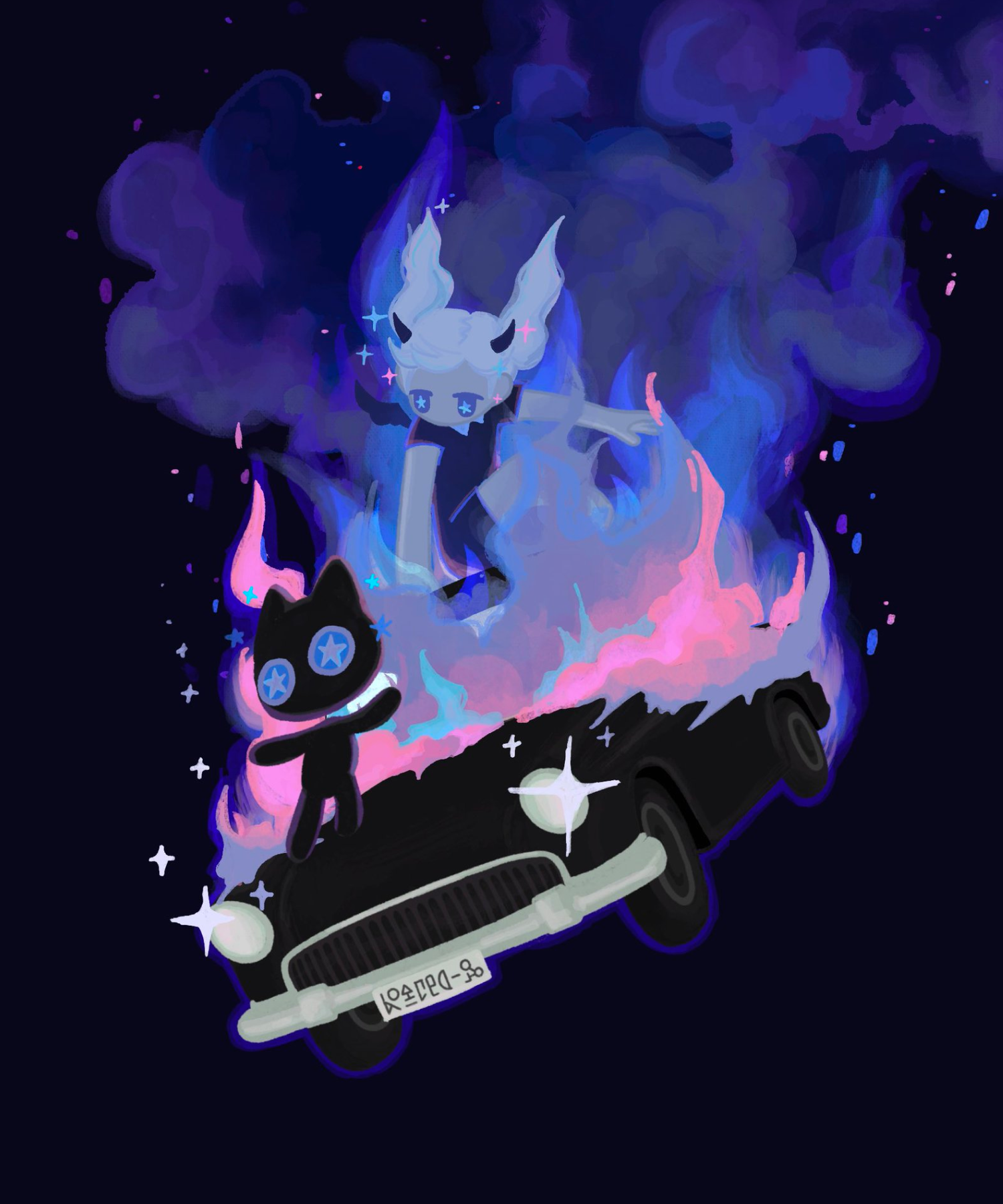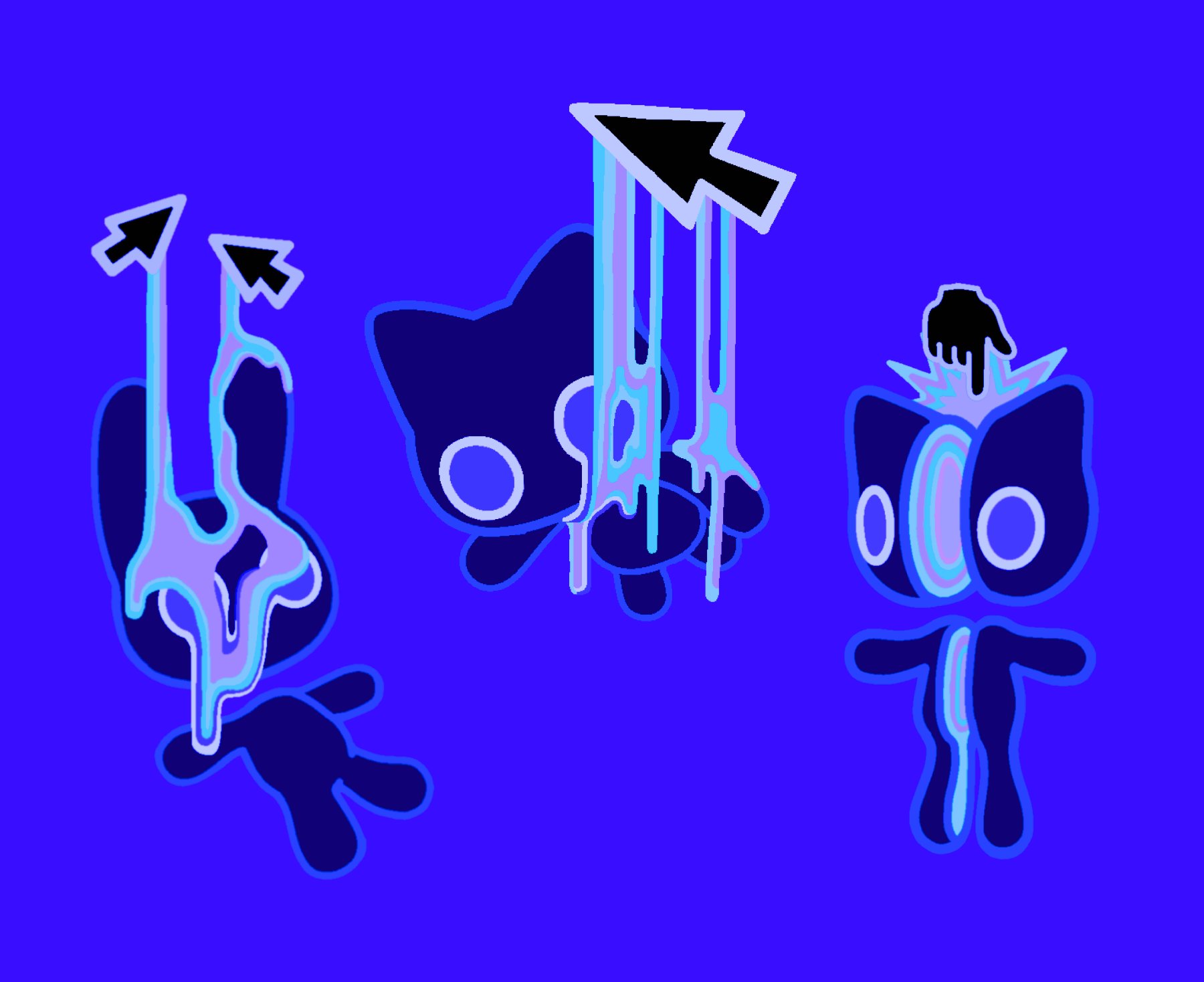 ネオンな色使いとダークでミニマルなキャラクターデザインが特徴。非現実的な空間と黒猫が好き。