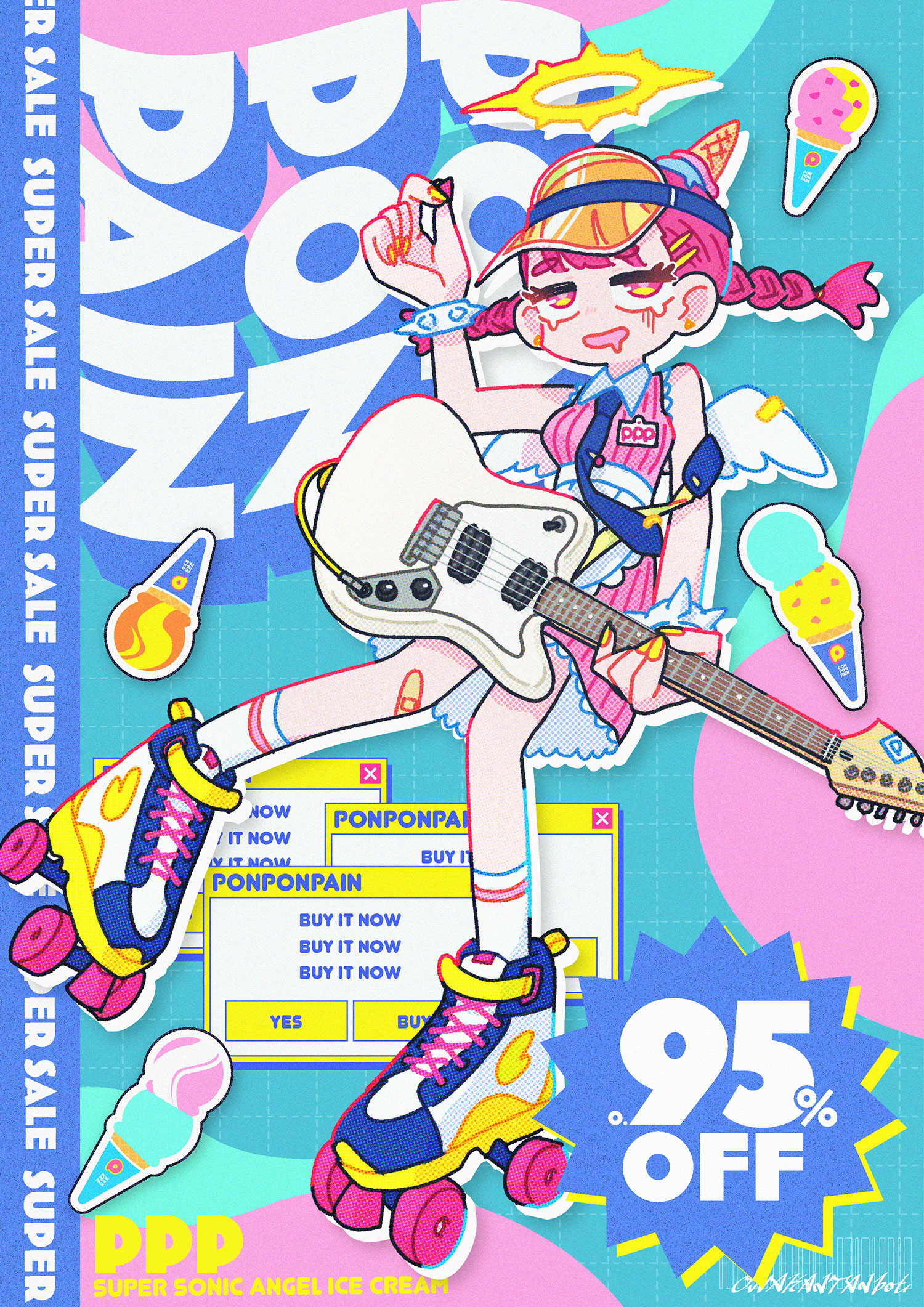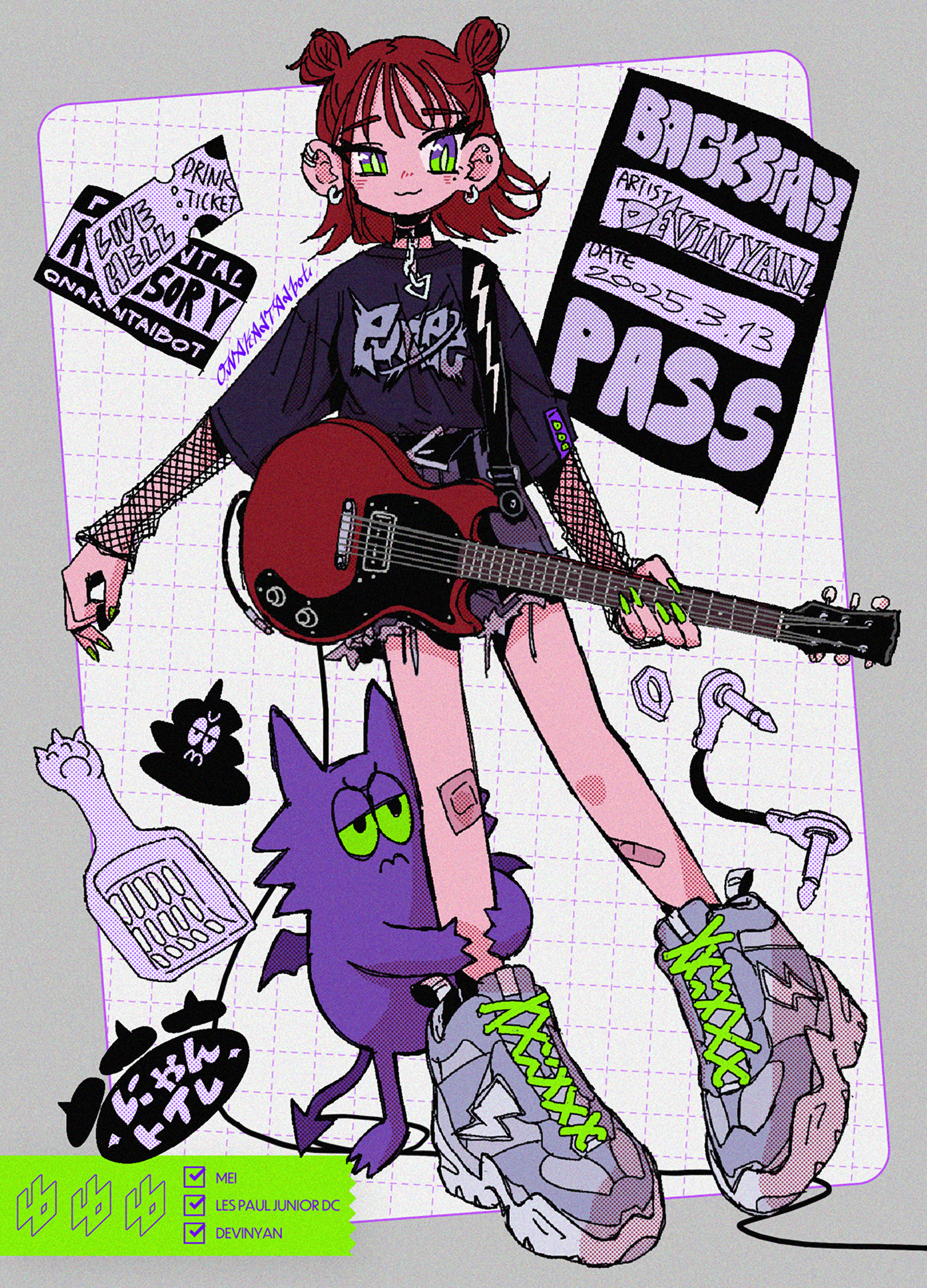 1991年生まれのイラストレーター/デザイナー。 ギターを持った女の子を中心に描いています。
