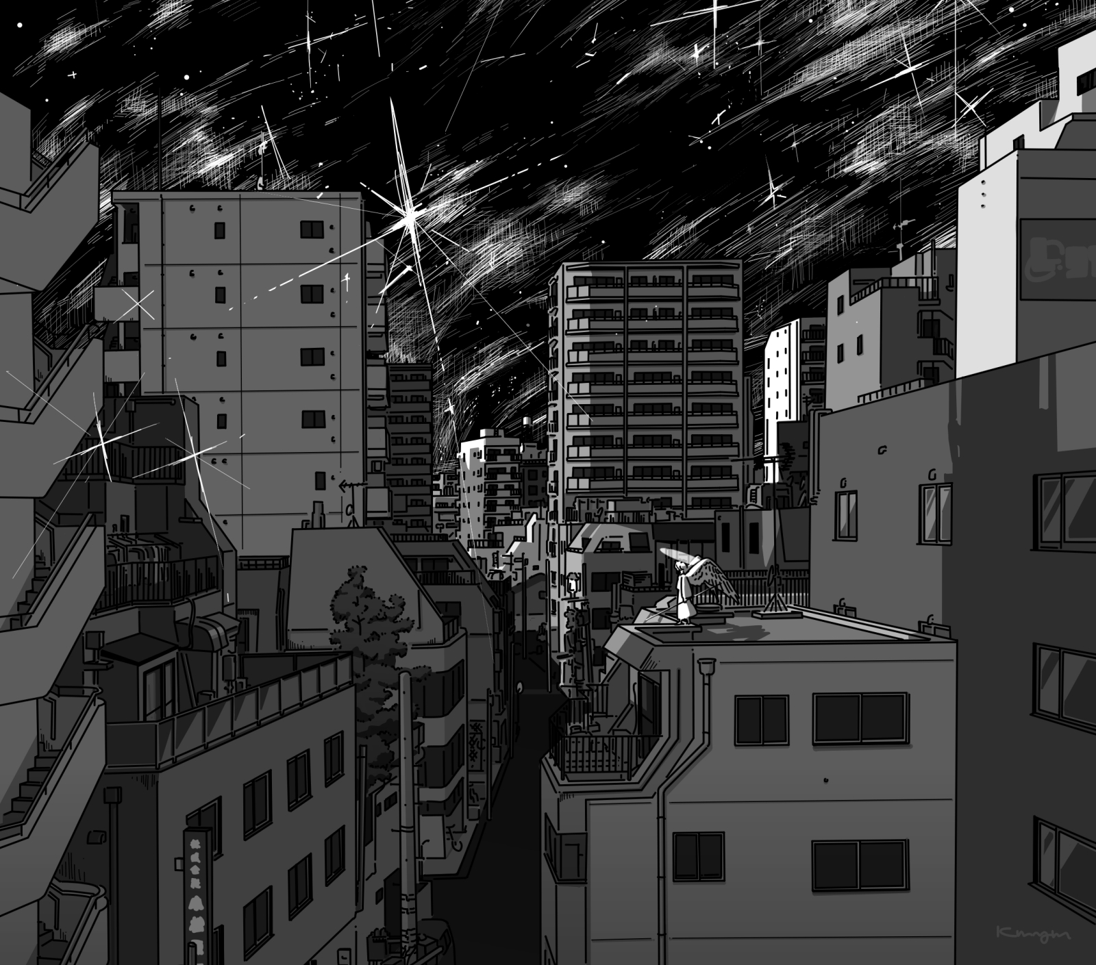 イラストとアニメーションをやっています。モノクロ調で夜の絵をよく描きます。