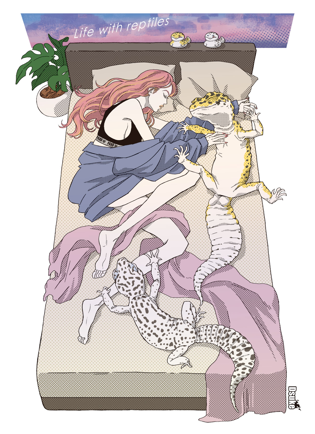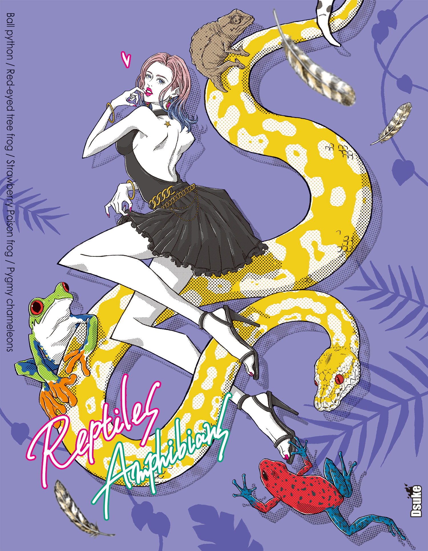 大阪在住のイラストレーター。 デザイン事務所や文具メーカーでのキャラクターイラスト・デザインを経て フリーランスのイラストレーターとして活動中。 アメコミ、ポップでエロかっこいいガールズイラストが得意。 生き物好きで爬虫類と女性を組み合わせたり、動物キャラクターも展開。