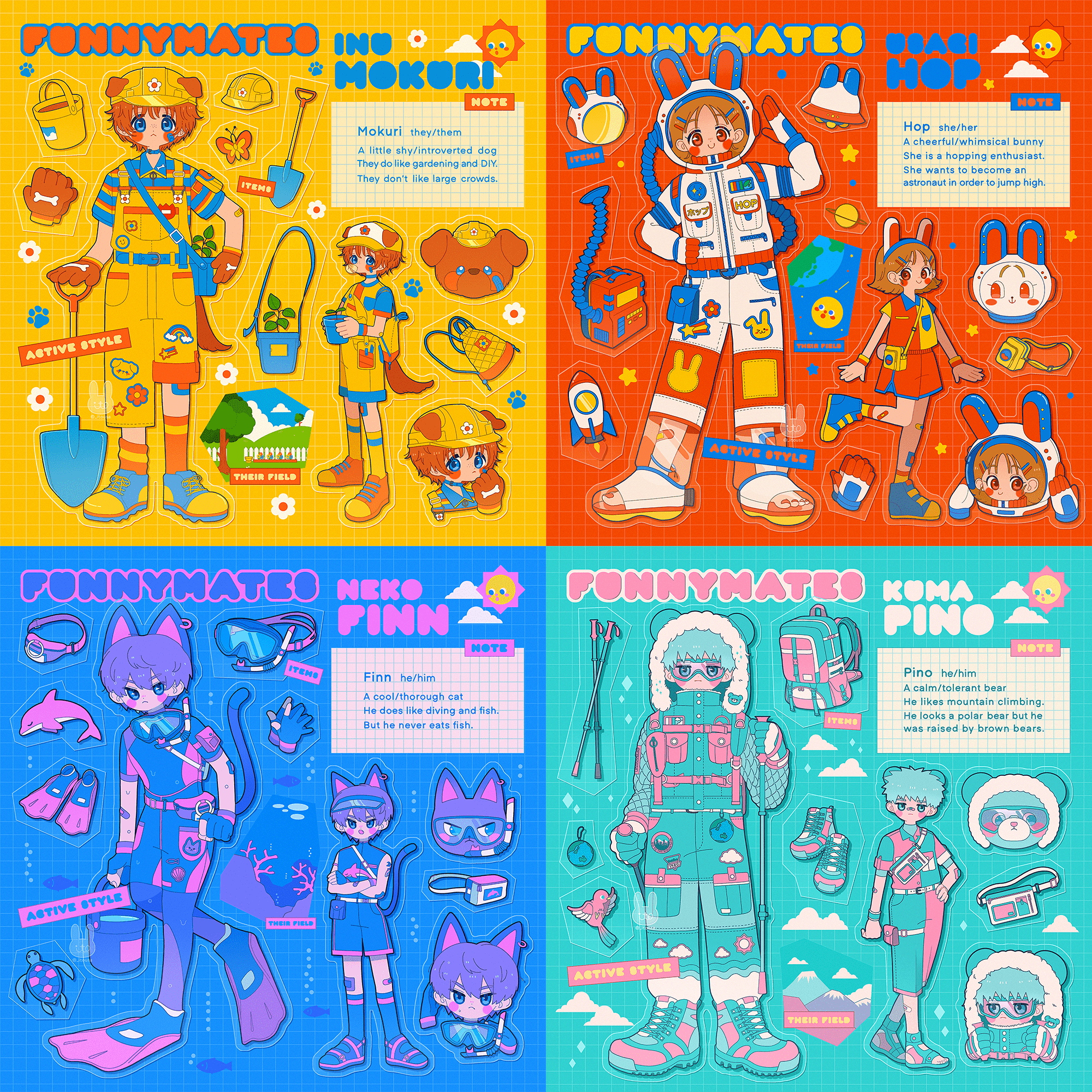 子ども心をくすぐるようなワクワクするイラストを描きます。キャラクターデザインやグッズデザインが得意です。